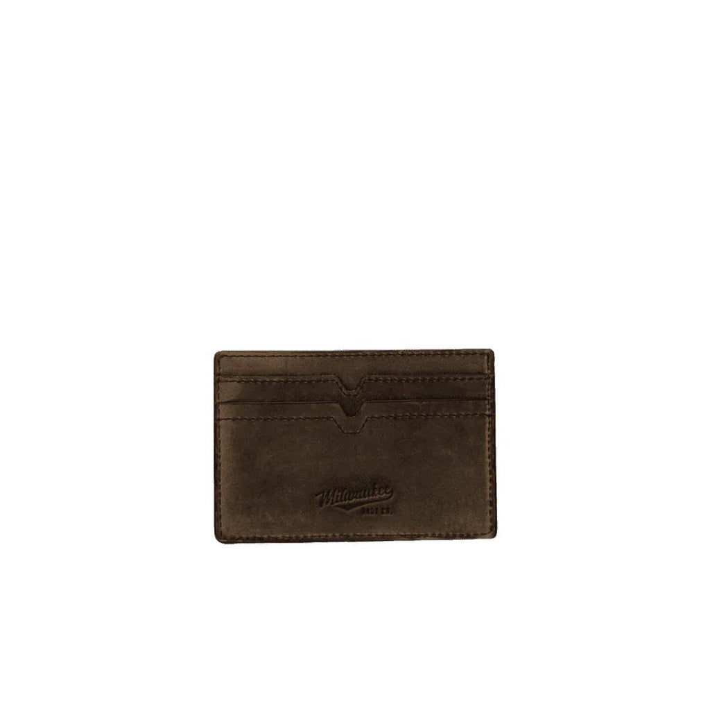 Handcrafted with safety in mind, these card cases come equipped with RFID protection built in. Named after one of Milwaukee’s prominent boulevards, the Grant is available in Scotch waxy leather and Green or Navy pull-up leather. These wallets wear in not out.