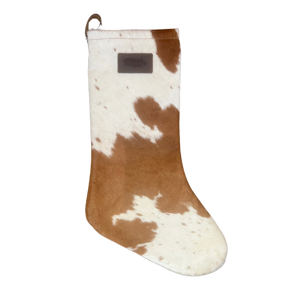 Bring a touch of rustic elegance to your holiday decor with a Cowhide Christmas Stocking. Handcrafted from genuine hair-on cowhide, each stocking features a one of a kind pattern in soft white and warm brown tones. Due to the natural material, no two are exactly alike.