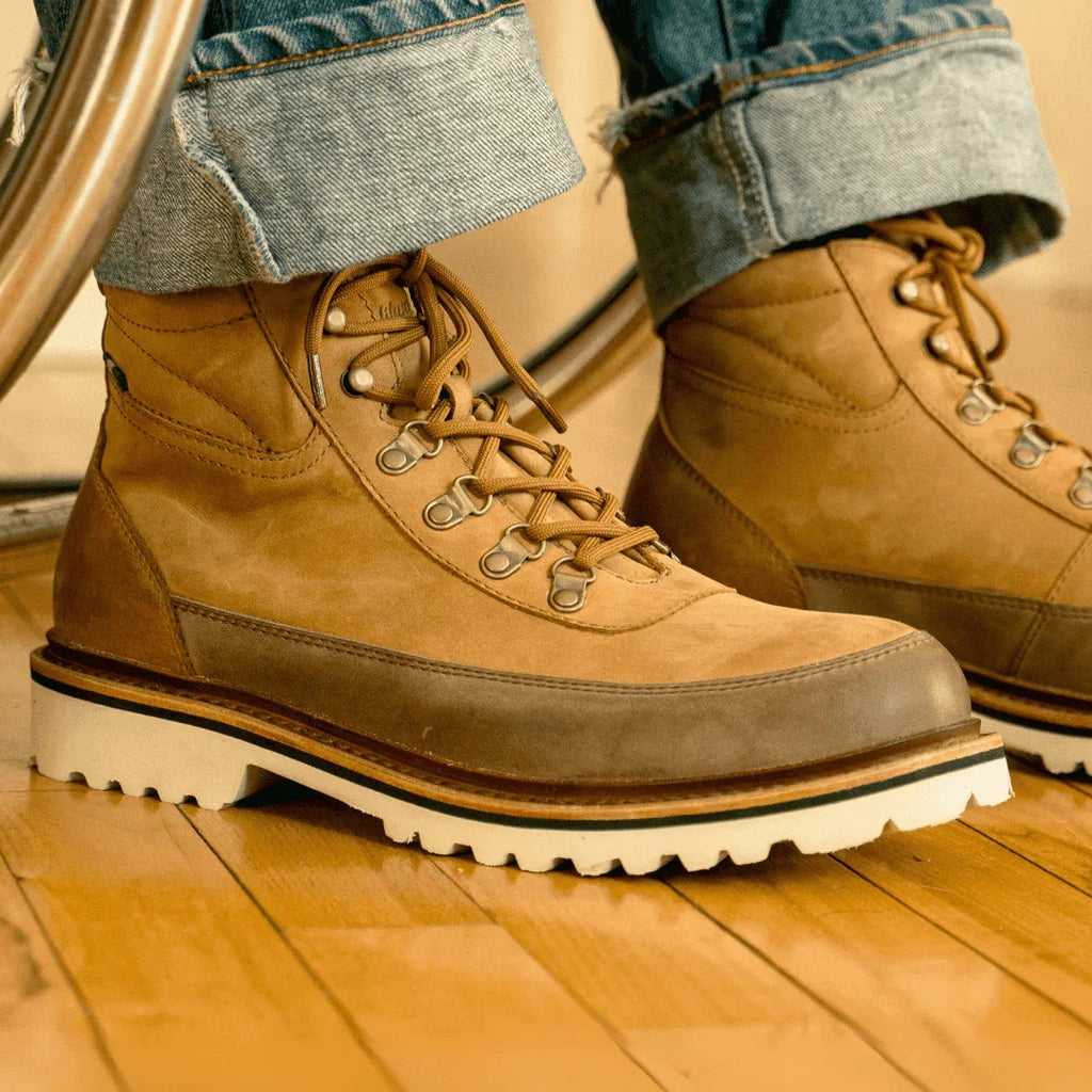 Introducing the Harvey Men's Alpine Boot, a lightweight and responsive alpine boot designed for durability and comfort. Featuring a padded collar, glove-tanned lining, and a Goodyear welted lug sole, this boot combines practicality with timeless style. Named after a pioneer in industrial education, this boot reflects his commitment to quality and craftsmanship in every step.