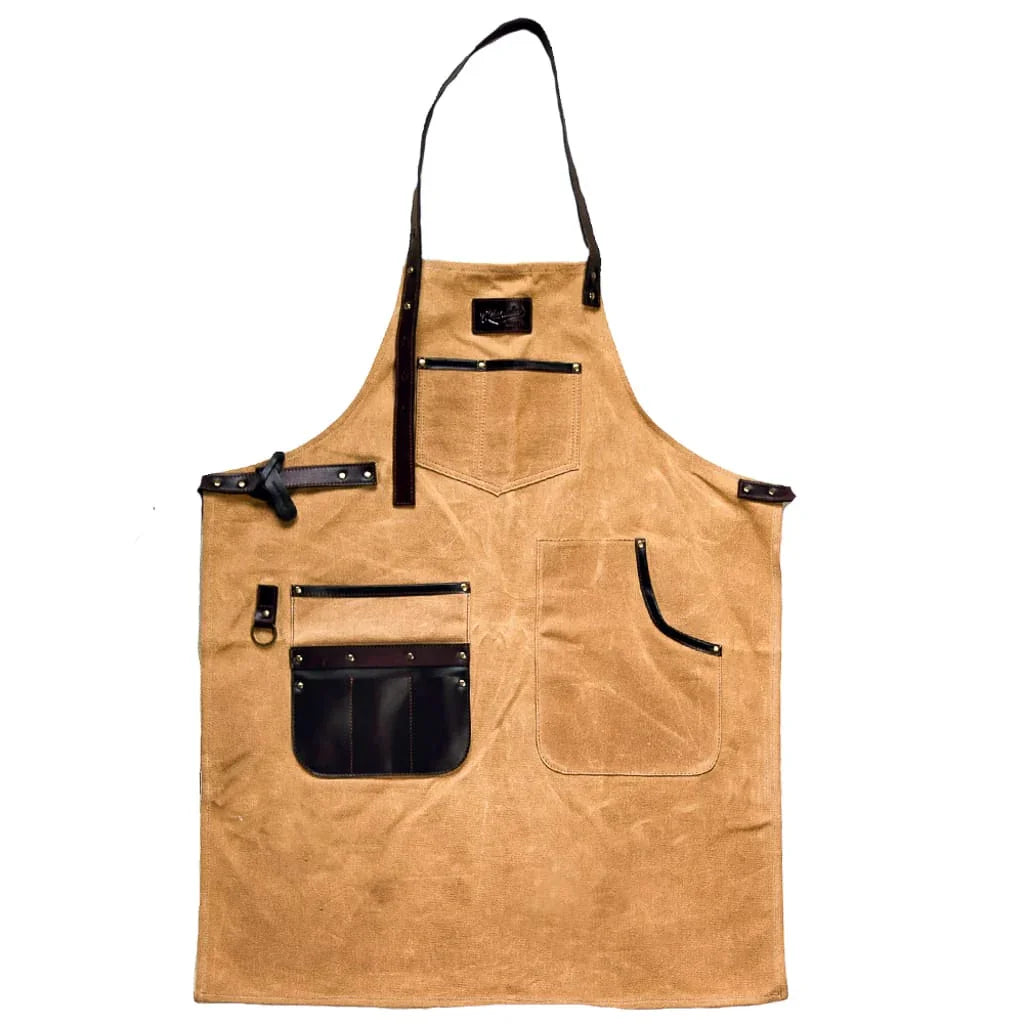 Whether you're working in the kitchen, behind the bar, or in a barbershop, the Brewmaster apron is a hardworking addition to any studio, workshop, or makers space. Hand-stitched with premium canvas and leather accents, this working apron features deep side pockets, a breast pocket and three additional pockets designed for easy access to your gear or utensils.